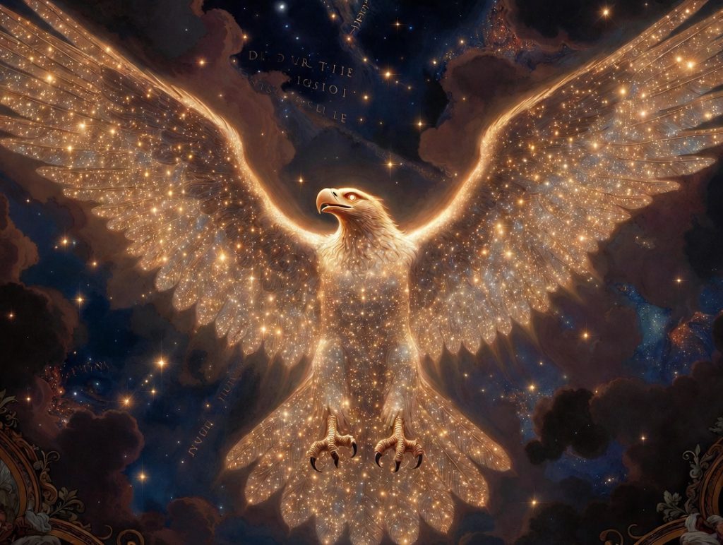 The Pilgrim had felt overwhelmed, but now he slowly understands that the Spiritual Power and Energy has been there all along the journey so far. From the spiritual substance within himself, in his life, in the world, his awakened state, and in his discovery of a mission. In all of this, there has been an element of the infinite spiritual power at work. And even more so in the eagle of Divine Justice, the cosmic force that works to sustain Reality and mitigate the damaging effects of free wills turning to vice and sin.